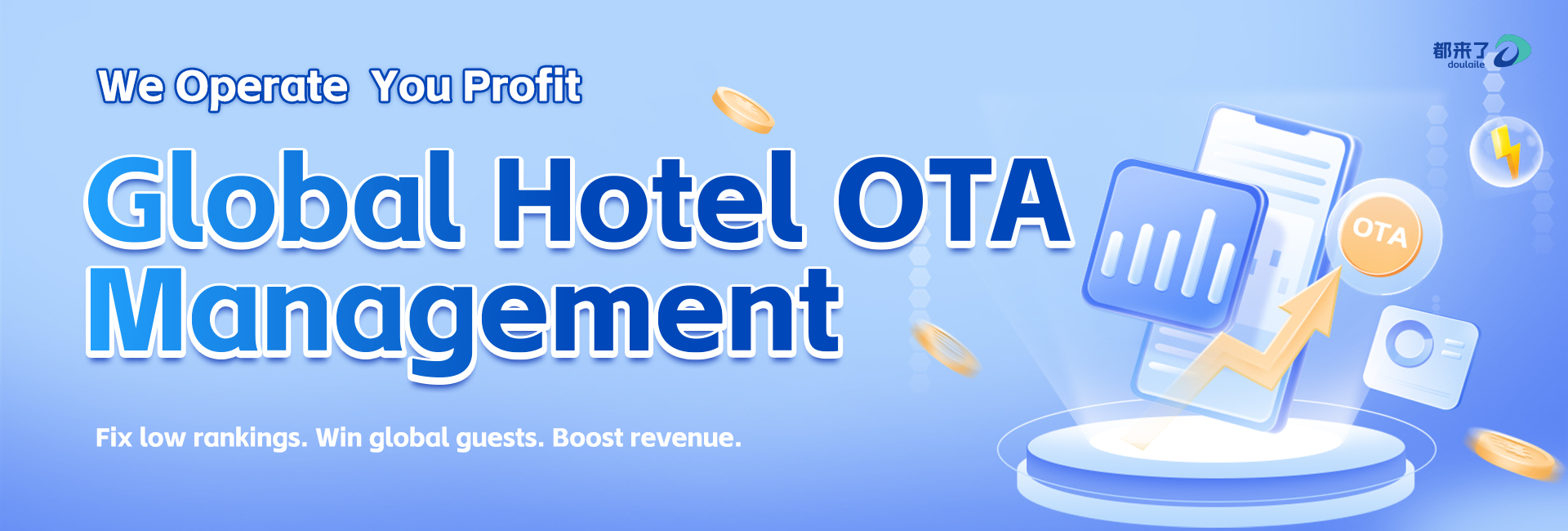 We provide one-stop full platform hosting services that help hotels achieve sustained growth through algorithm optimization, high conversion design, word-of-mouth management, and intelligent pricing.